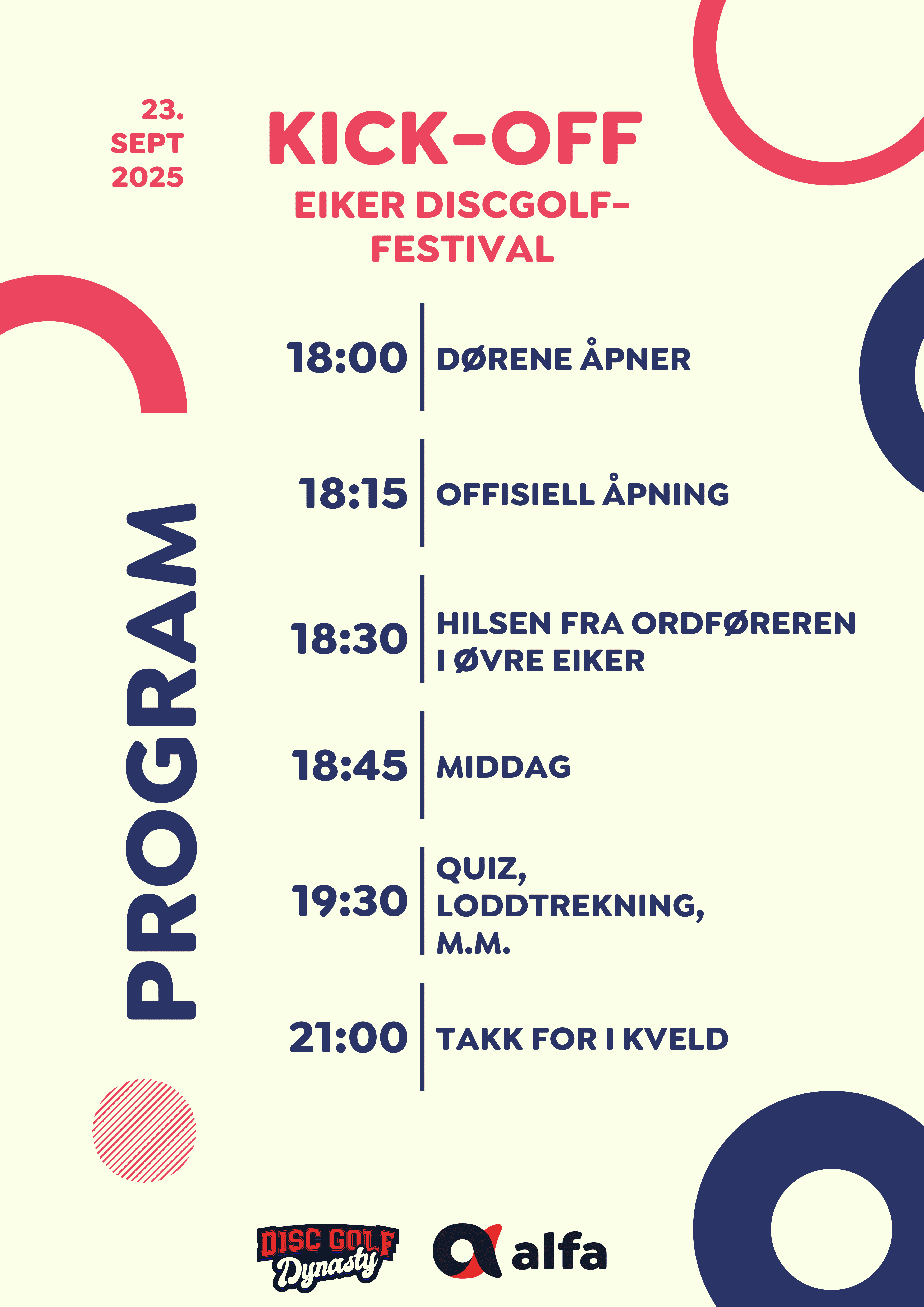 Vi arrangerer KickOff for Eiker Discgolf-Festival tirsdag 23. september klokken 18:00 på Onkel Thor i Vestfossen.